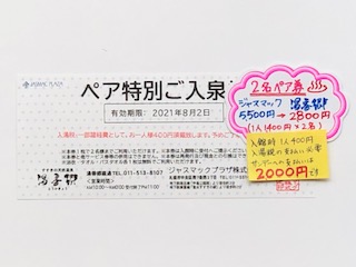 今回は 湯香郷ペア特別ご入泉券 が入荷しました